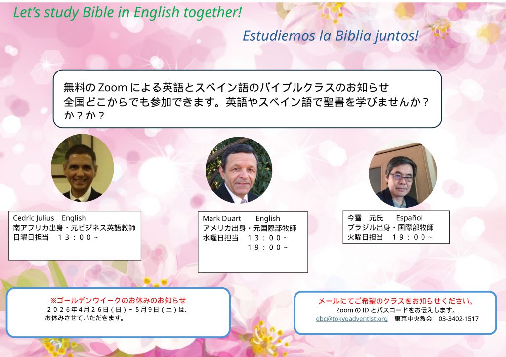 Zoomによる英語とスペイン語の無料バイブルクラスを開講しています。